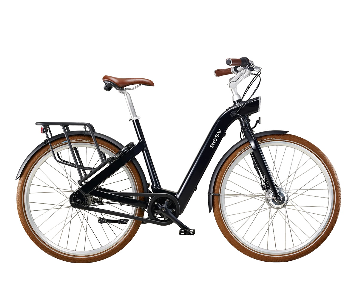 FRAME BESV premium alloy low step frame with down tube for integrated Darfon battery and head tube integrated front light, for rear hub motor, tapered 1 1/8\\” head tube, post disc mount, cold-forged IG dropout