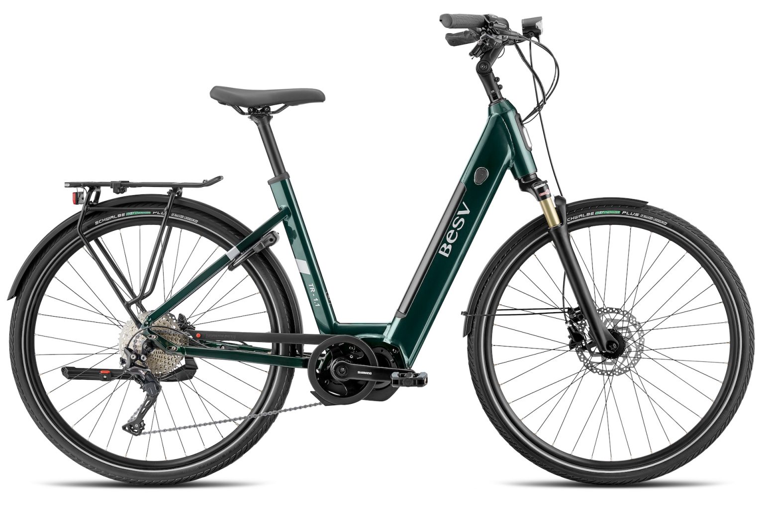 FRAME BESV premium alloy frame with down tube for integrated Darfon battery, Shimano center-motor with protection cover, tapered 1 1/8″ – 1.5″ head tube, post disc mount, cold-forged dropout and replaceable hanger